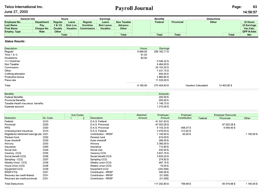 and deductions to printing statements of earnings, T4 slips and Quebec